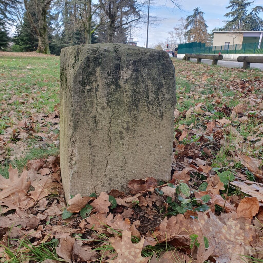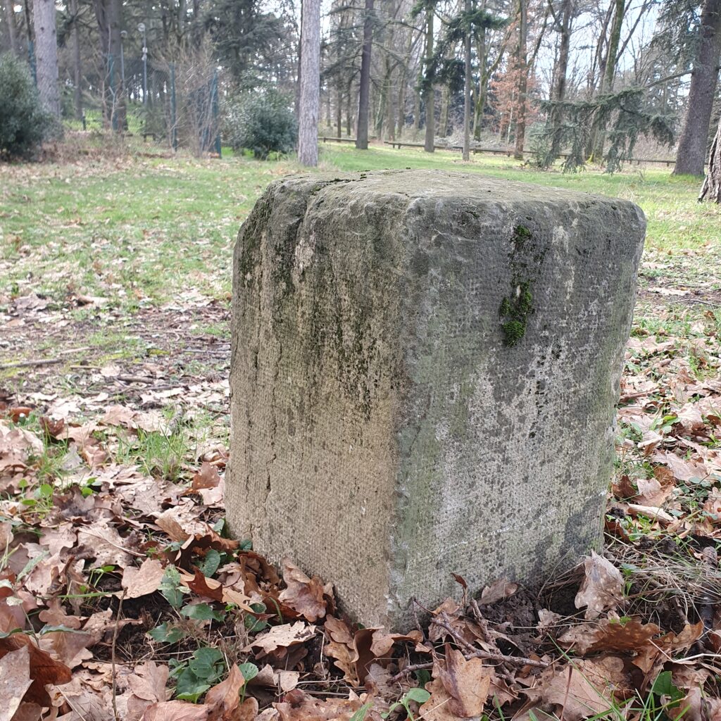 Quelques bornes militaires délimitent encore les terrains acquis par l’armée autour de la fortification lors de la construction.