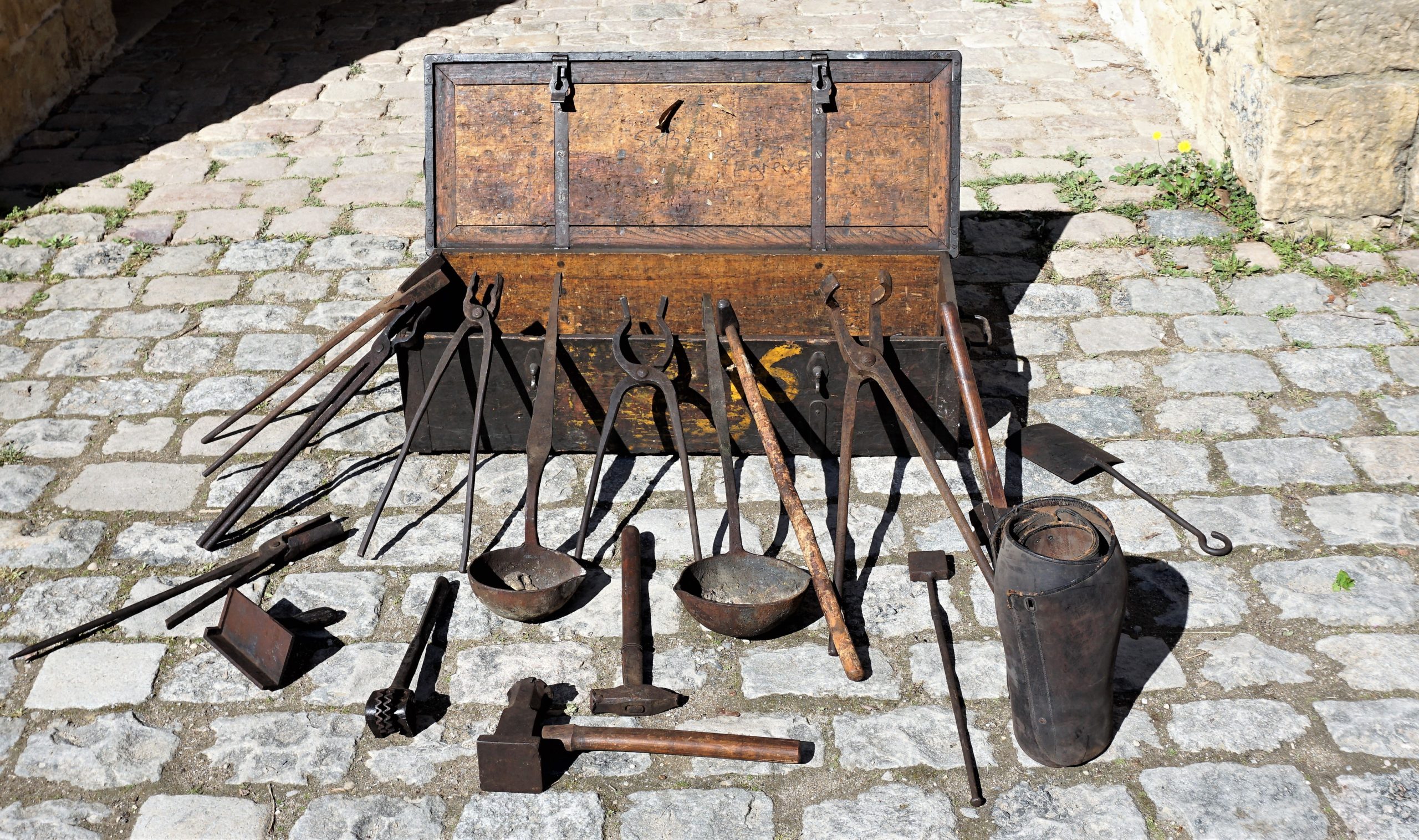 Une caisse vraisemblablement des années 1870-1880 refermant tout l’outillage d’une forge (Don de la 3ème compagnie du 7ème RAMT)
