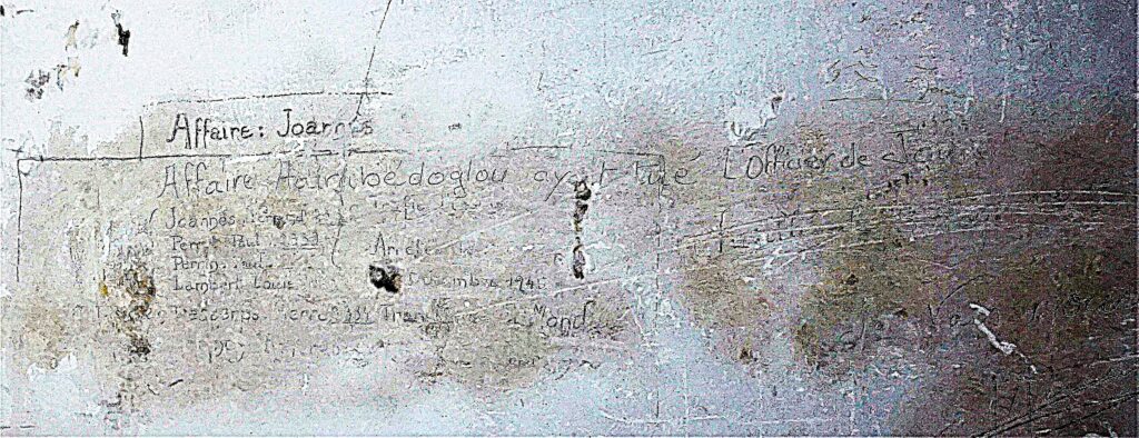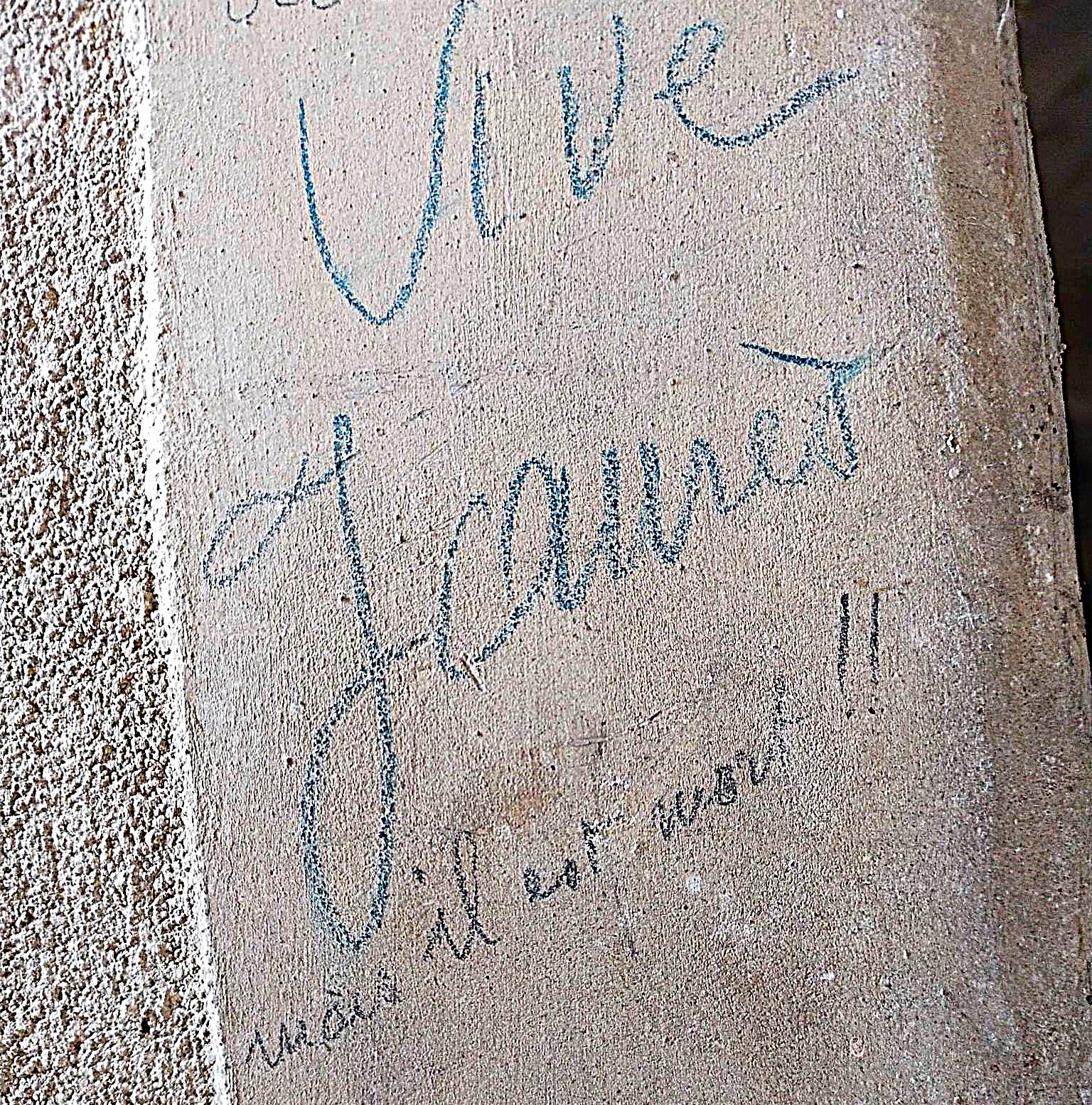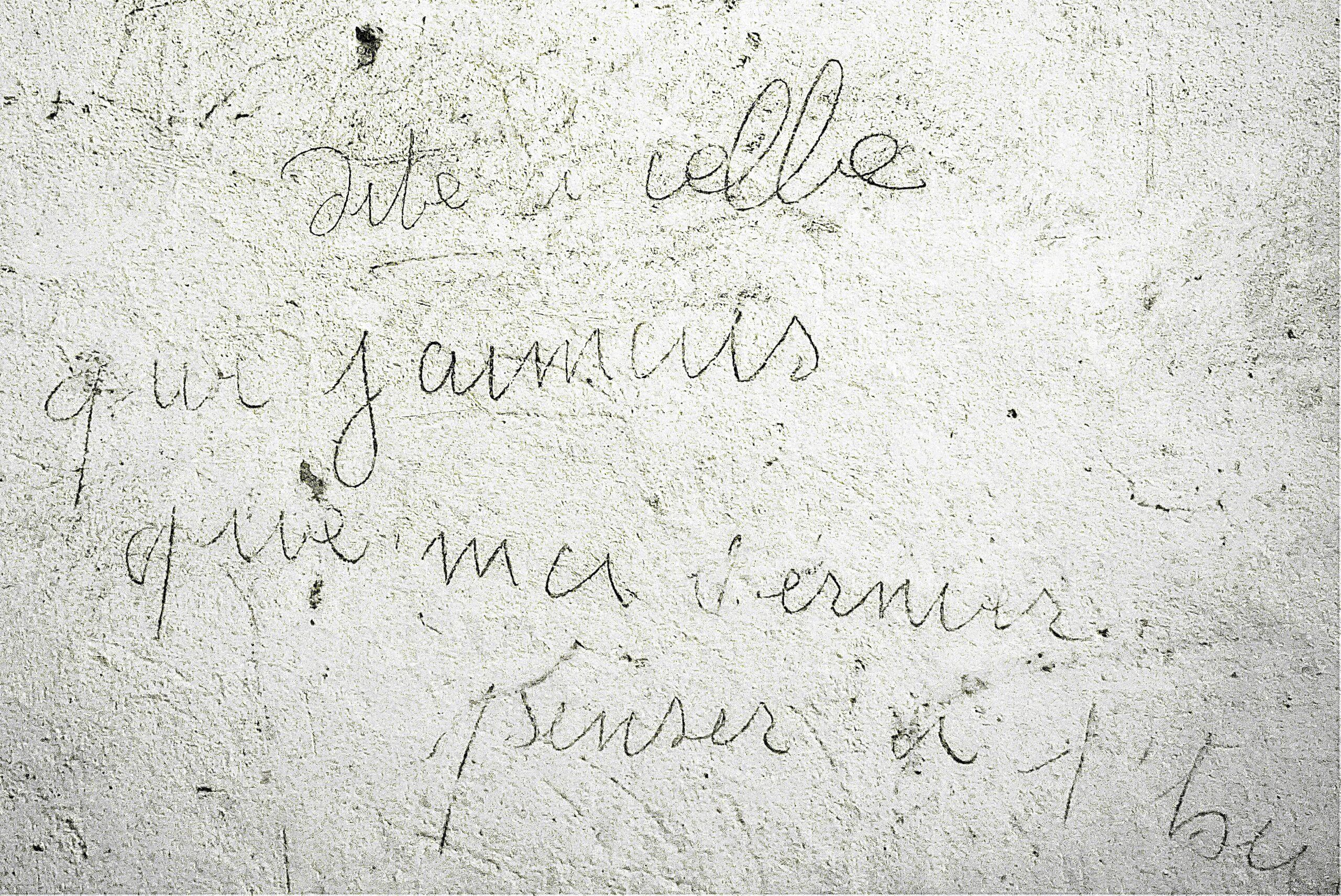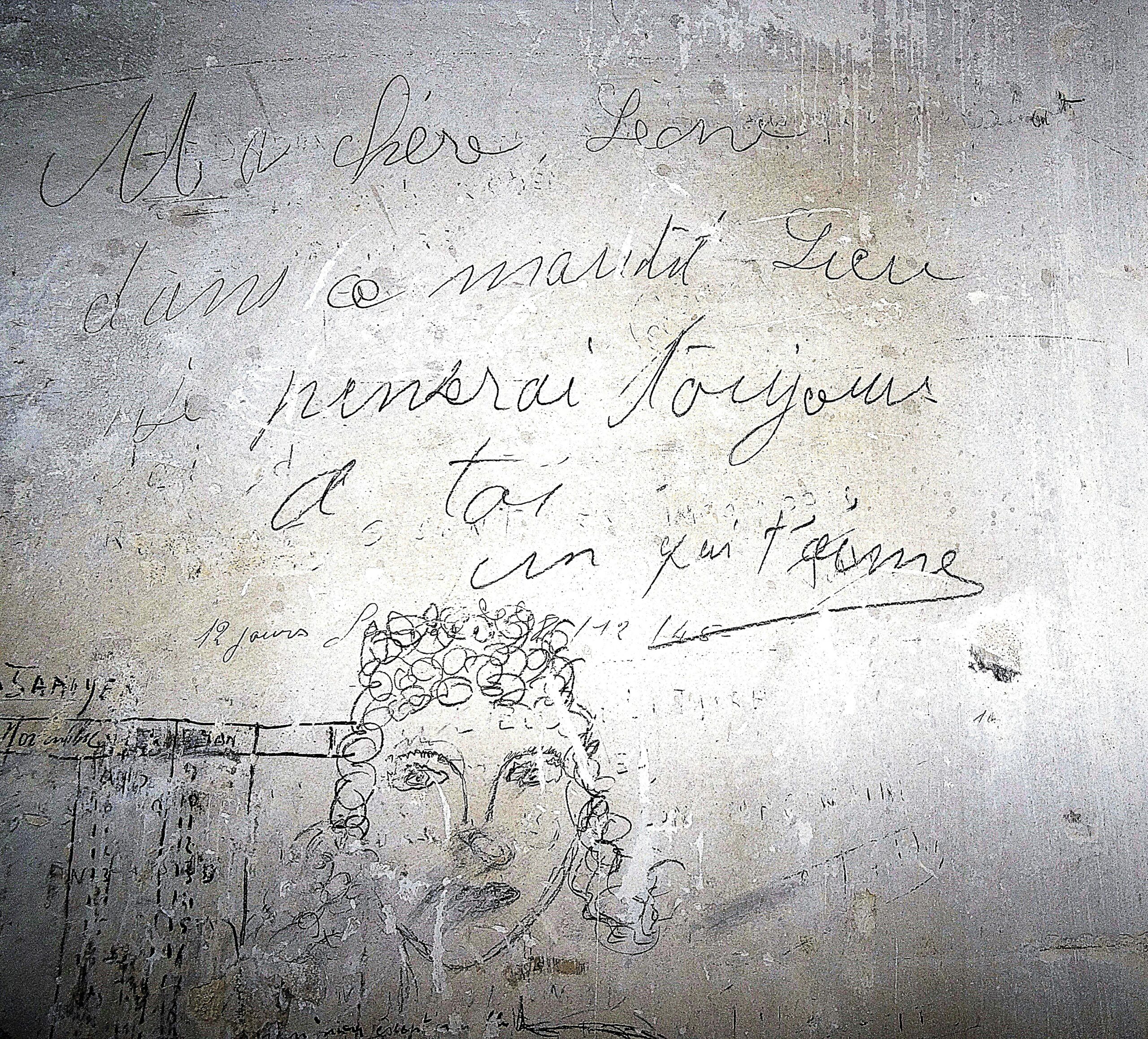 Les graffiti sont présents dans différents locaux du Fort. Ils sont les témoignages de l’occupation des lieux et des préoccupations des auteurs de ces traces laissées sur les murs.