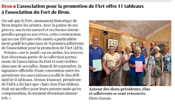 Convention entre L’APA et l’association 20 septembre – Extrait journal « Le Progrès » . Des œuvres qui seront visibles désormais au Fort.
